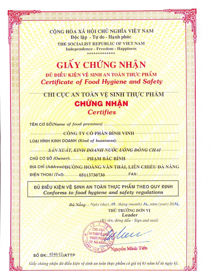 Với mục tiêu ”VÌ SỨC KHỎE CỘNG ĐỒNG”, năm 2004, khi mở rộng sang lĩnh vực sản xuất nước uống đóng chai, Công ty Bình Vinh đã đầu tư một dây chuyền sản xuất đồng bộ và hiện đại theo công nghệ của Mỹ mang thương hiệu nước uống tinh khiết BIWA.